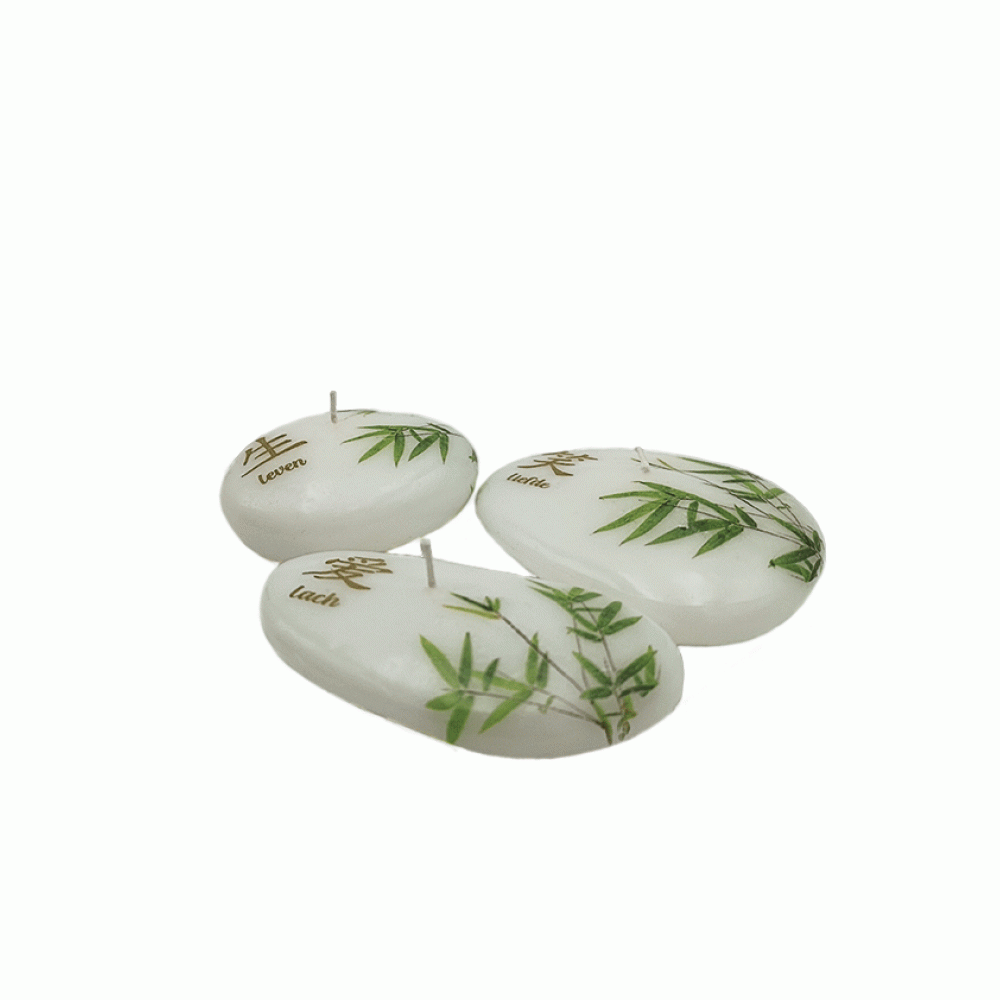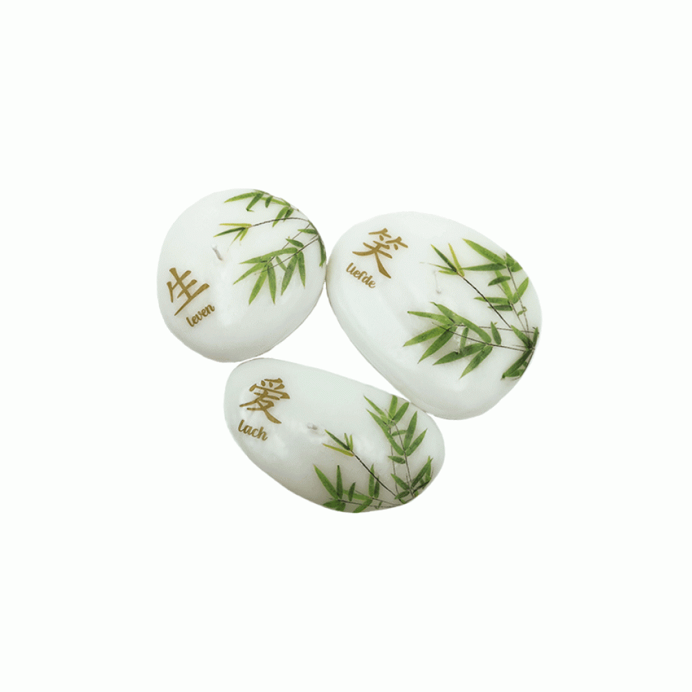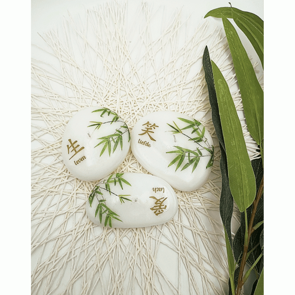Abstracte kaarsen Liefde, Leven, Lach stenen met chinese karakters set van 3 stuks,