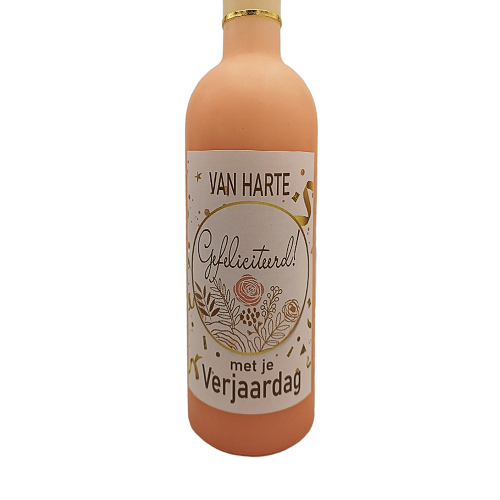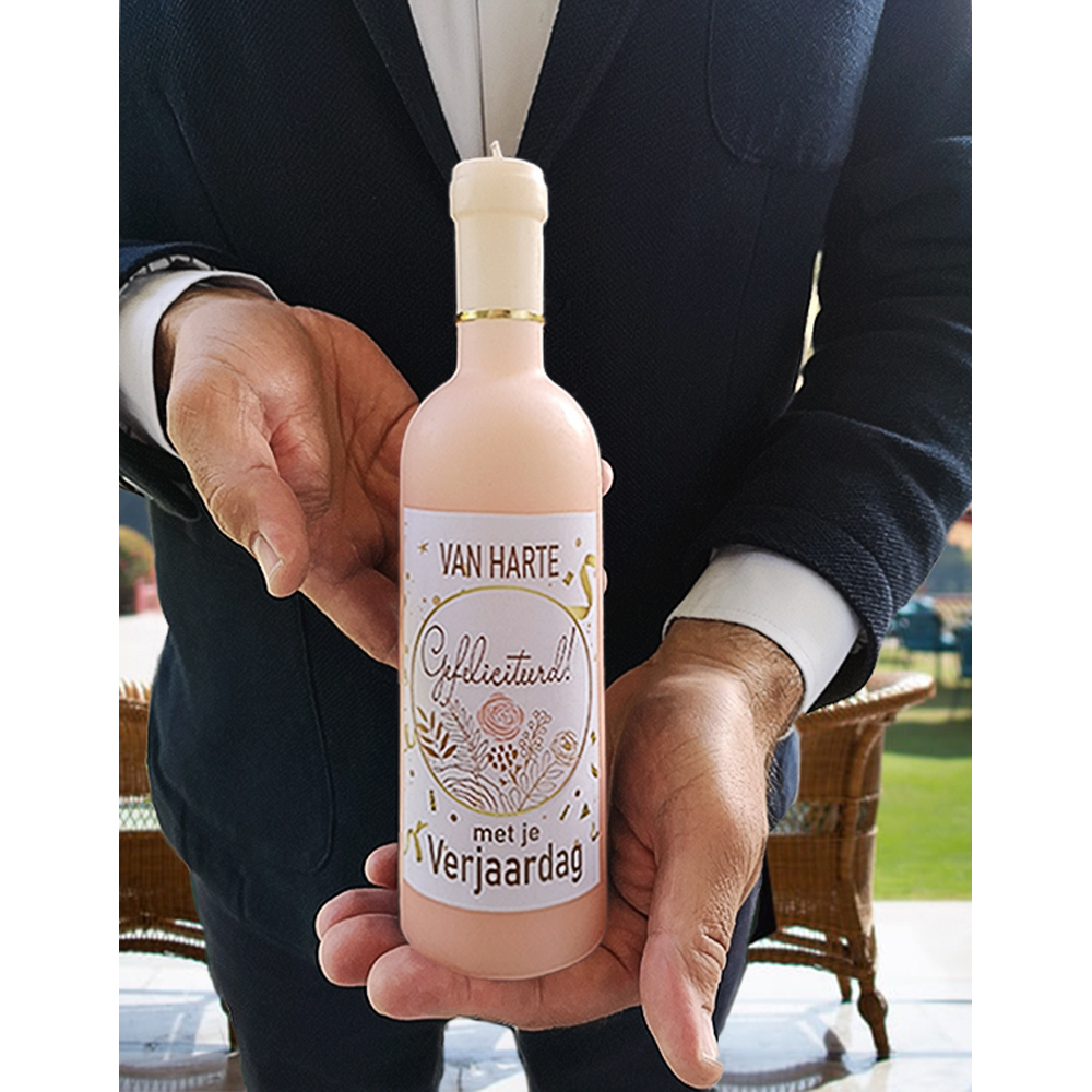 Verjaardag cadeau Flesvormige kaars van de rose wijn, 23 cm.