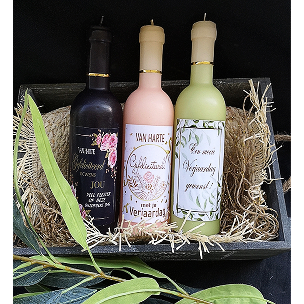 Verjaardag cadeau voor hem of voor haar in de blisterverpakking. Prachtige flesvormige kaars van de wijn in een mooie blisterverpakking. Deze mooie kaars brengt meteen de feestsfeer in huis, het is bijna jammer om hem aan te steken, een mooi cadeau om te geven. Originele Kaarsen bieden een sfeervolle manier om uw woning te decoreren tijdens de feestdagen of verjaardag feest. Kaarsen kenmerken zich door de warme en sfeervolle uitstraling en zijn zeer geschikt voor diverse gelegenheden. Alles draagt bij aan een kwaliteitskaars die niet walmt, niet ruikt, niet druipt en mooi gelijkmatig opbrandt. Onze kwaliteitskaarsen zijn afgestemd op de huidige tendensen, interieurs en decoraties. De flesvormige kaars van de wijn met een leuke boodschap voor jarige.