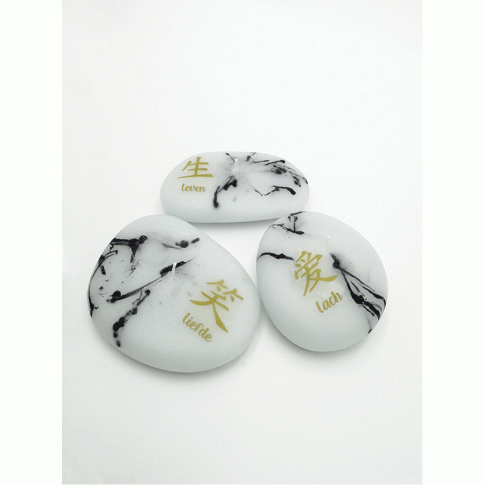Abstracte kaarsen stenen met chinese karakters set van 3 stuk.
