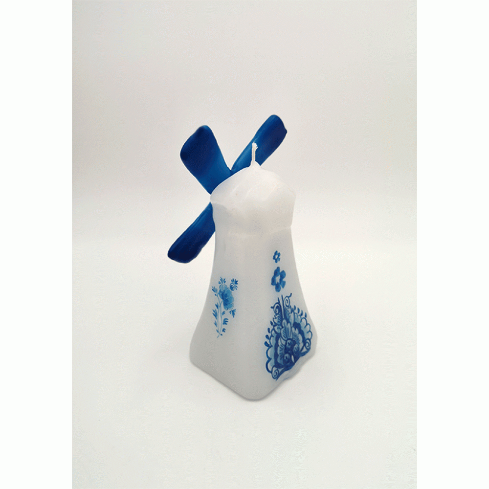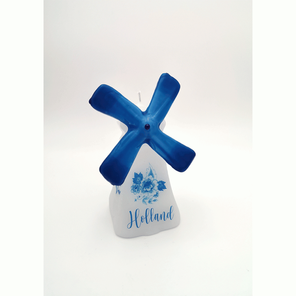 Prachtig exemplaar van de Hollandse Blauwe molen, voorzien van alle details, inclusief draaiende wieken. Deze absoluut schattige Kaars met Hollandse Blauwe afbeeldingen is een must voor iedereen die van buitengewone decoratie-ideeën houdt, prima idee voor interieur.