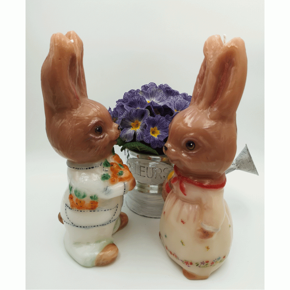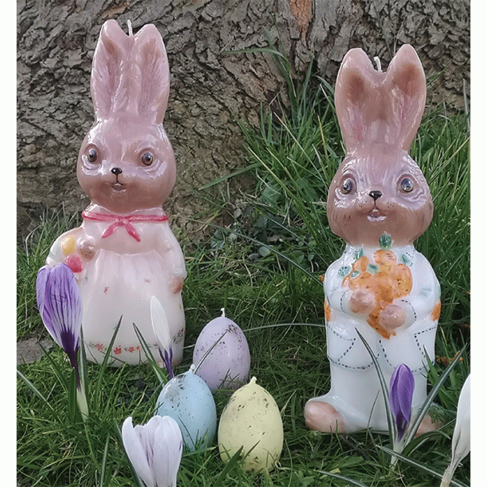 Deze exclusieve paaskaarsen zijn 26 cm. groot en door het eigen design zeer exclusief. De schattigste Paashazen zijn de beste vrienden ter wereld. Deze mooie Paaskaarsen, Paashazen set van 2 stuks zijn namelijk de perfecte basis voor je feestelijke paastafel. Sfeervolle vrolijke kaarsen voor op je feest tafel. Paasversiering met mooie paaskaarsen, paastafel dekken met mooie paaskaarsen, paastafel versieren en decoreren, dat kan met deze exclusieve handgemakte paaskaarsen. Maak iedereen blij met deze vrolijke Paaskaarsen. leuk voor jezelf of als cadeau, want we verpakken deze kaarsen in handige cadeau folie voor een mooie uitstraling. Kaarsen kenmerken zich door de warme en sfeervolle uitstraling en zijn zeer geschikt voor diverse gelegenheden.