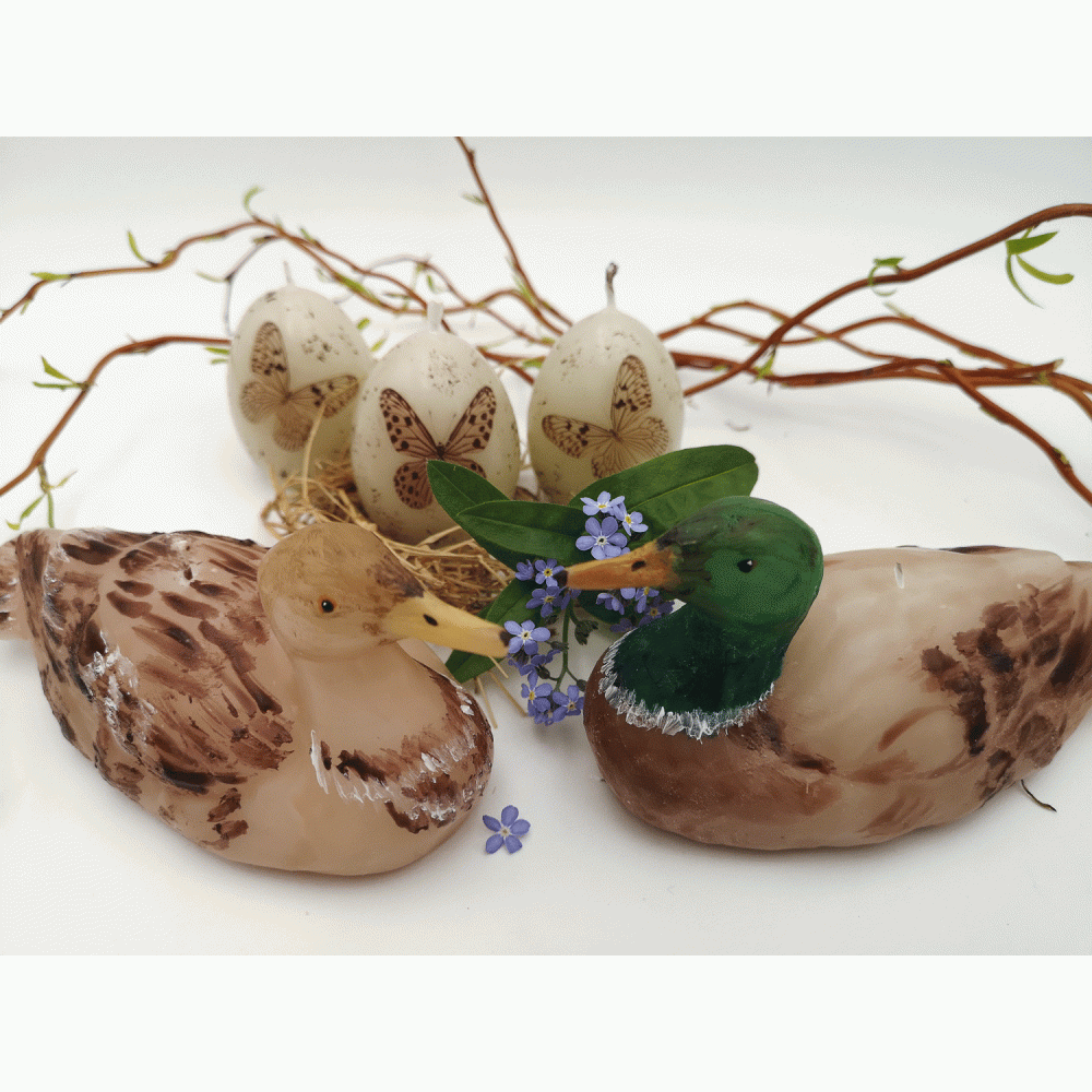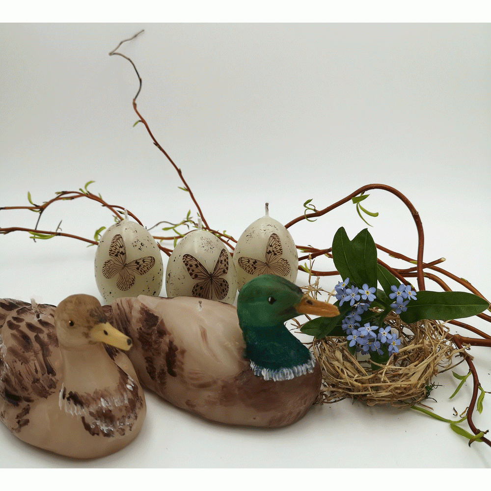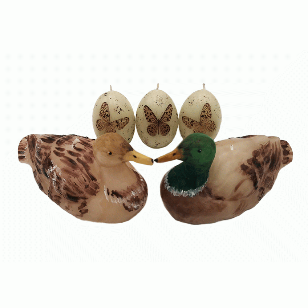 Deze mooie Paaskaarsen twee eenden met een drie eieren set van 5 stuks zijn namelijk de perfecte basis voor je feestelijke paastafel. Paasversiering met mooie paaskaarsen, paastafel dekken met mooie paaskaarsen, paastafel versieren en decoreren, dat kan met deze exclusieve handgemakte paaskaarsen. Maak iedereen blij met deze vrolijke Paaskaarsen. leuk voor jezelf of als cadeau, want we verpakken deze kaarsen in handige cadeau folie voor een mooie uitstraling. Deze exclusieve kaarsen zijn door het eigen design zeer exclusief. Kaarsen kenmerken zich door de warme en sfeervolle uitstraling en zijn zeer geschikt voor diverse gelegenheden.