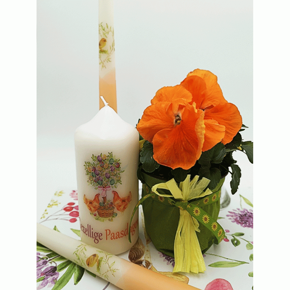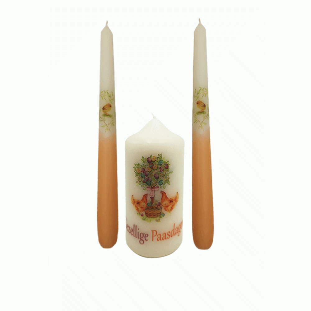 Deze mooie Paaskaarsen twee gotische kaarsen en een stompkaars set van 3 stuks zijn namelijk de perfecte basis voor je feestelijke paastafel. Sfeervolle vrolijke kaarsen met mooie paas afbeeldigen voor op je feest tafel. Paasversiering met mooie paaskaarsen, paastafel dekken met mooie paaskaarsen, paastafel versieren en decoreren, dat kan met deze exclusieve handgemakte paaskaarsen. Deze exclusieve kaarsen zijn door het eigen design zeer exclusief. Kaarsen kenmerken zich door de warme en sfeervolle uitstraling en zijn zeer geschikt voor diverse gelegenheden.