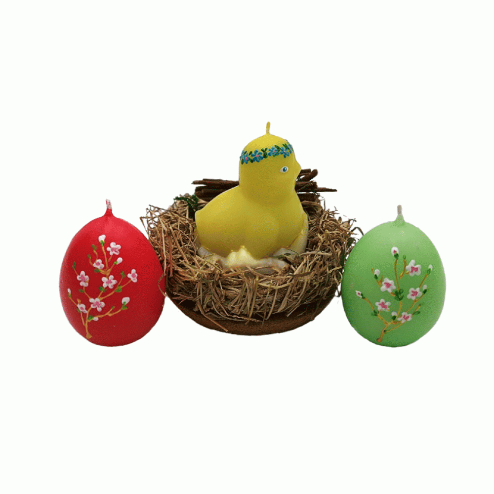 Paaskaarsen Kuiken met Eieren set van 3 stuks