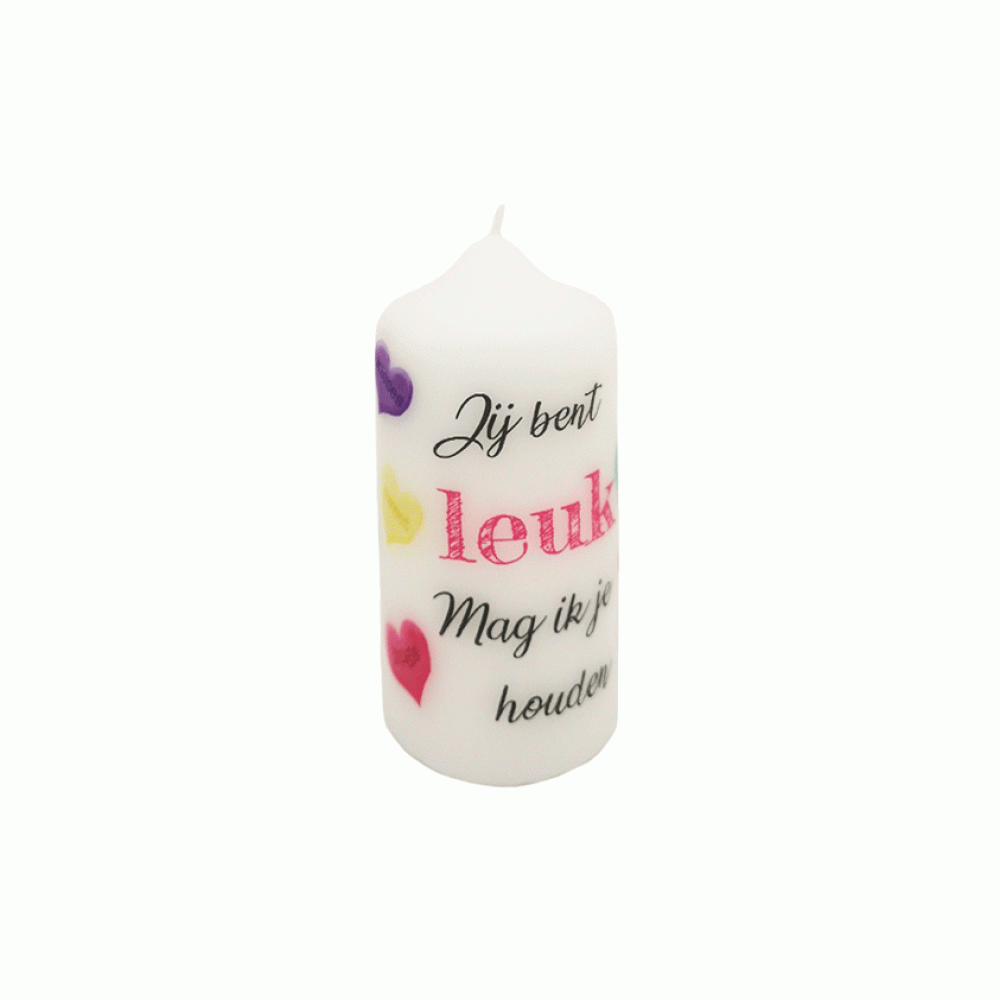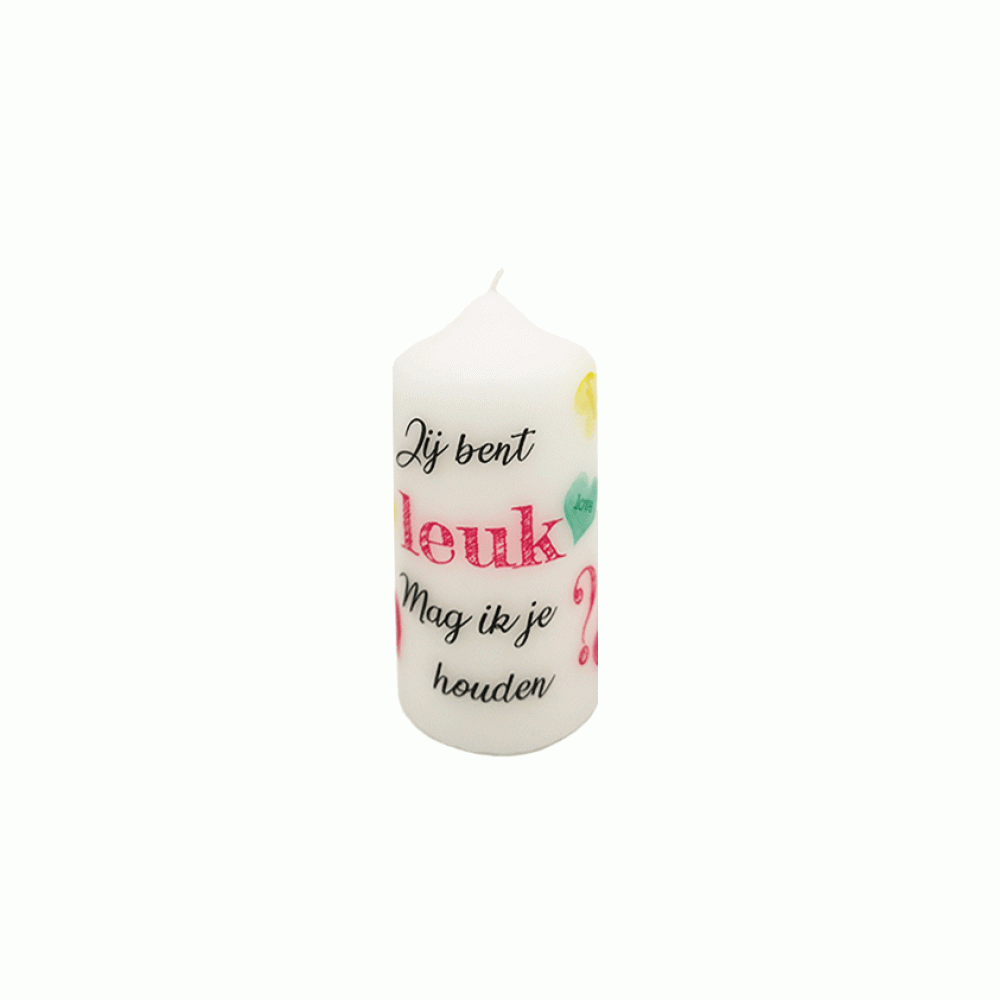 Kaars met afbeelding van romantiek en liefde. Vrolijke kaars met een leuke boodschap. Deze absoluut schattige Love Kaars is een origineel geliefdes kado. Een mooie en originele cadeau voor jezelf of voor een ander. Valentijnsdag is de dag van de liefde. Op deze dag kun je je geliefde eens heerlijk in het zonnetje zetten en verrassen met een lieve Love kaars. Speciaal voor Valentijnsdag hebben we een Valentijn kaarsen gemaakt die opvallen door design, kleur, prijs en originaliteit. Onze duurzame Valentijn kaarsen zijn perfect om je geliefde mee te verrassen op Valentijnsdag!